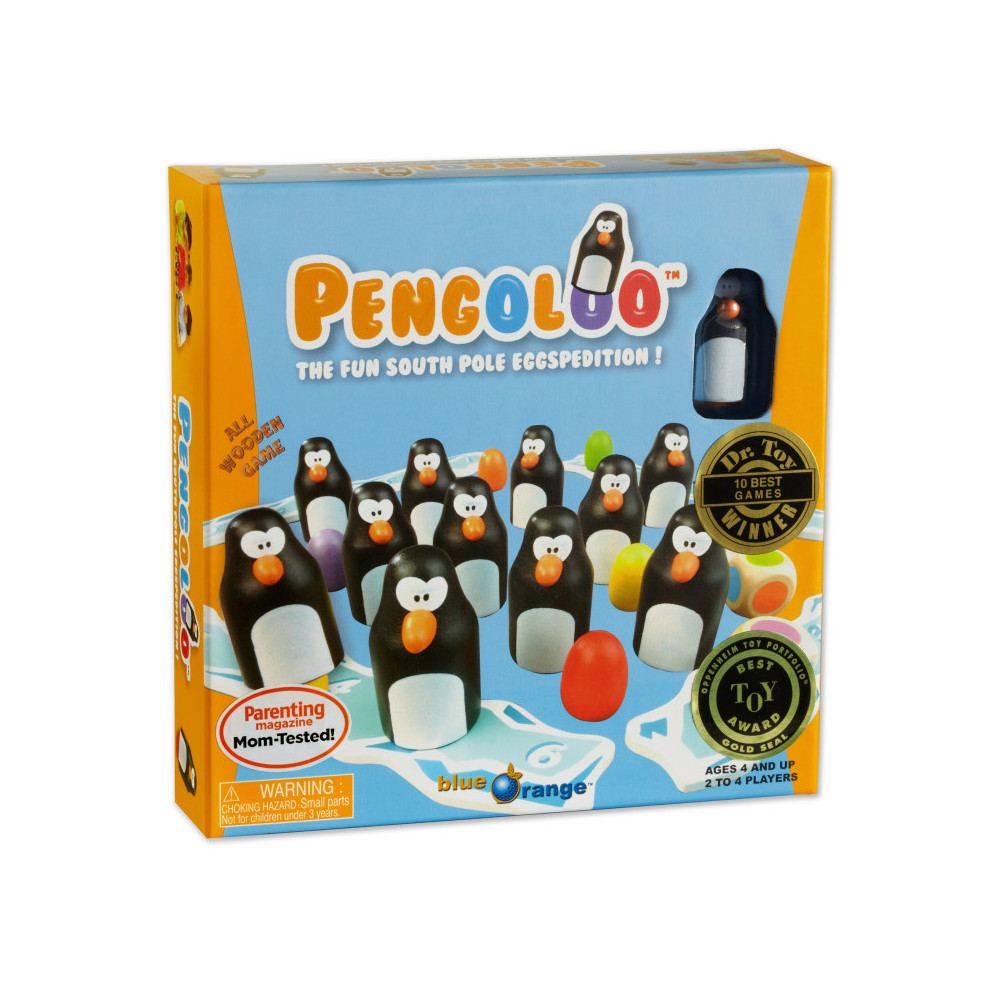 Each turn, players roll the colored dice and look under two penguins for eggs that match the colors on the face of each die. Guess correctly and keep the penguin on your iceberg. Collect six penguins to win!