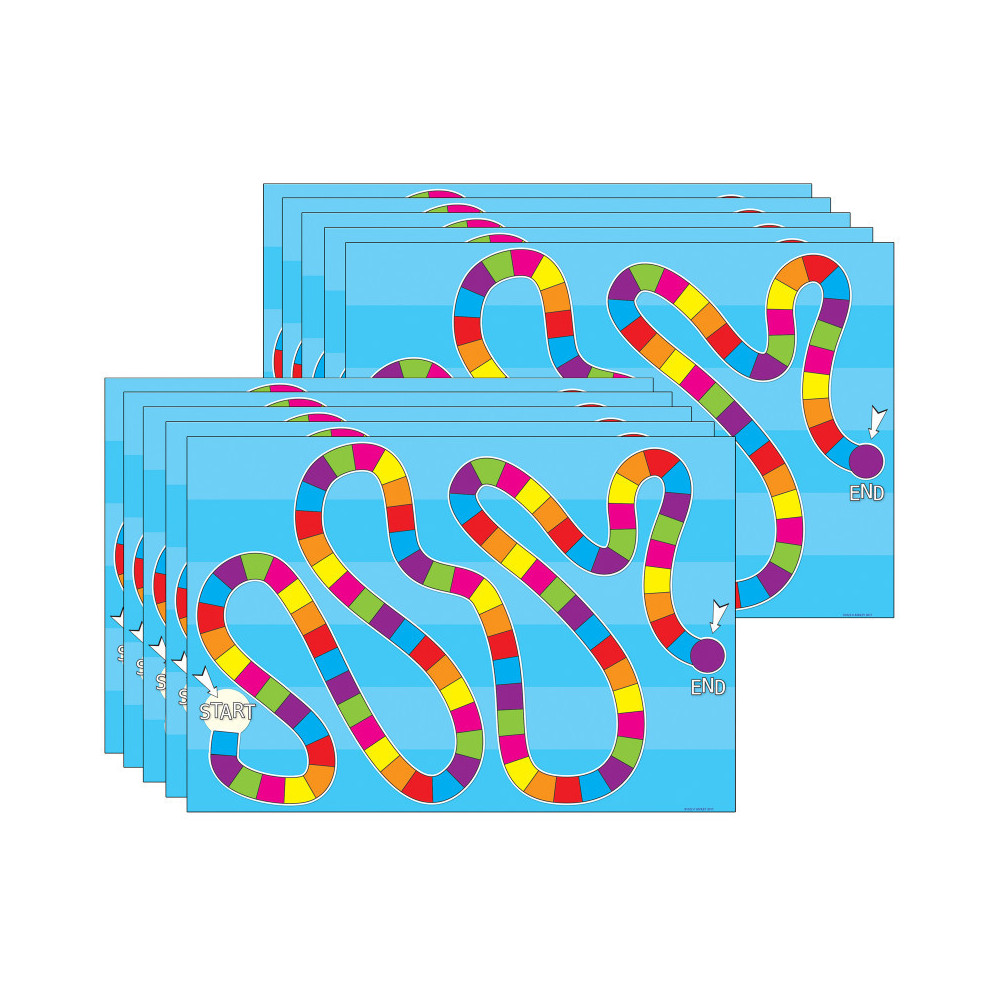 This material from Ashley is called SMART POLY. The material has been designed for charts in the classroom and home. These charts are strong, durable, water proof, and do not need lamination. They can be displayed like any chart with staples, pins, and more. The surface is designed for dry erase and water based markers. Game Board Blank Spaces Smart Poly Chart measures 13" x 19" with a dry-erase, glossy surface, .45mm. Sold as a pack of 10 identical charts.