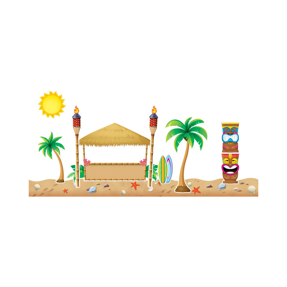 Ride the wave...to a new grade or to new heights of academic achievement. Have some fun as you display student work or classroom information. The hut measures 20 1/2" x 12 3/4". Teacher's guide and 63 pieces, including 43 surfboards.