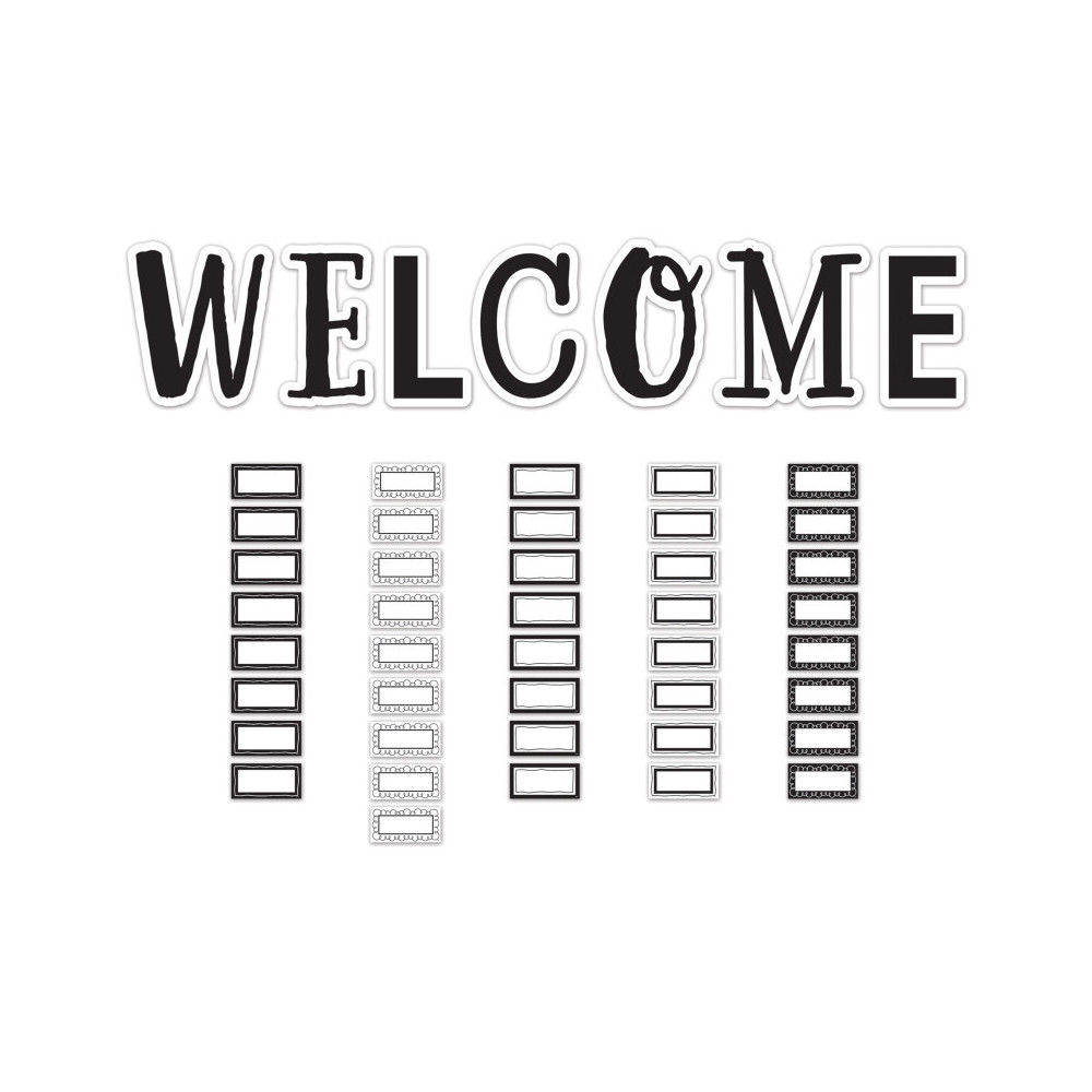 - Features: 7 title pieces spelling out "Welcome"; 42 multi-purpose, blank label accents; Bulletin board guide with set-up and activity suggestions.