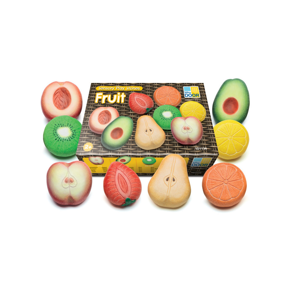 Fresh from the mud kitchen or outdoor area comes fruit salad, poached fruit, cobbler and pies. These durable stones are able to withstand the toughest of treatment and are as good as new once cleaned up. Children will find all sorts of ways to prepare and serve these delightful tactile stones for all-year-round dining. Set includes eight fruits: apple, pear, peach, strawberry, avocado, kiwi, orange and lemon. Measures 1.5 -3". Ages 2 years and up.