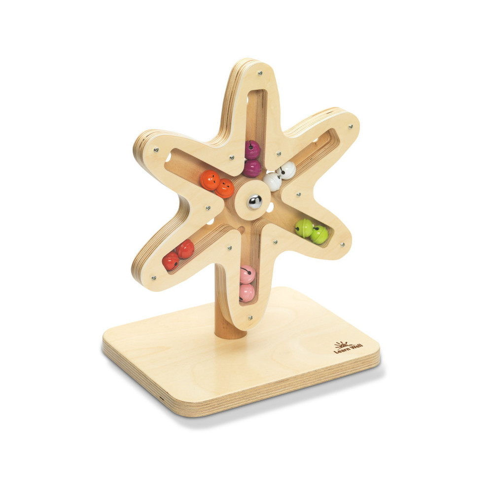 The Rotating Bell Flower is ideal for exploring sight and sound with very young children and older ones with special needs. The enclosed bells chime pleasantly as the flower is spun, making different sounds depending on the speed of the wheel. A perfectly engaging sensory toy for all ages. Made from high-quality, sustainably-sourced wood. Size 12" high. Safe from birth.