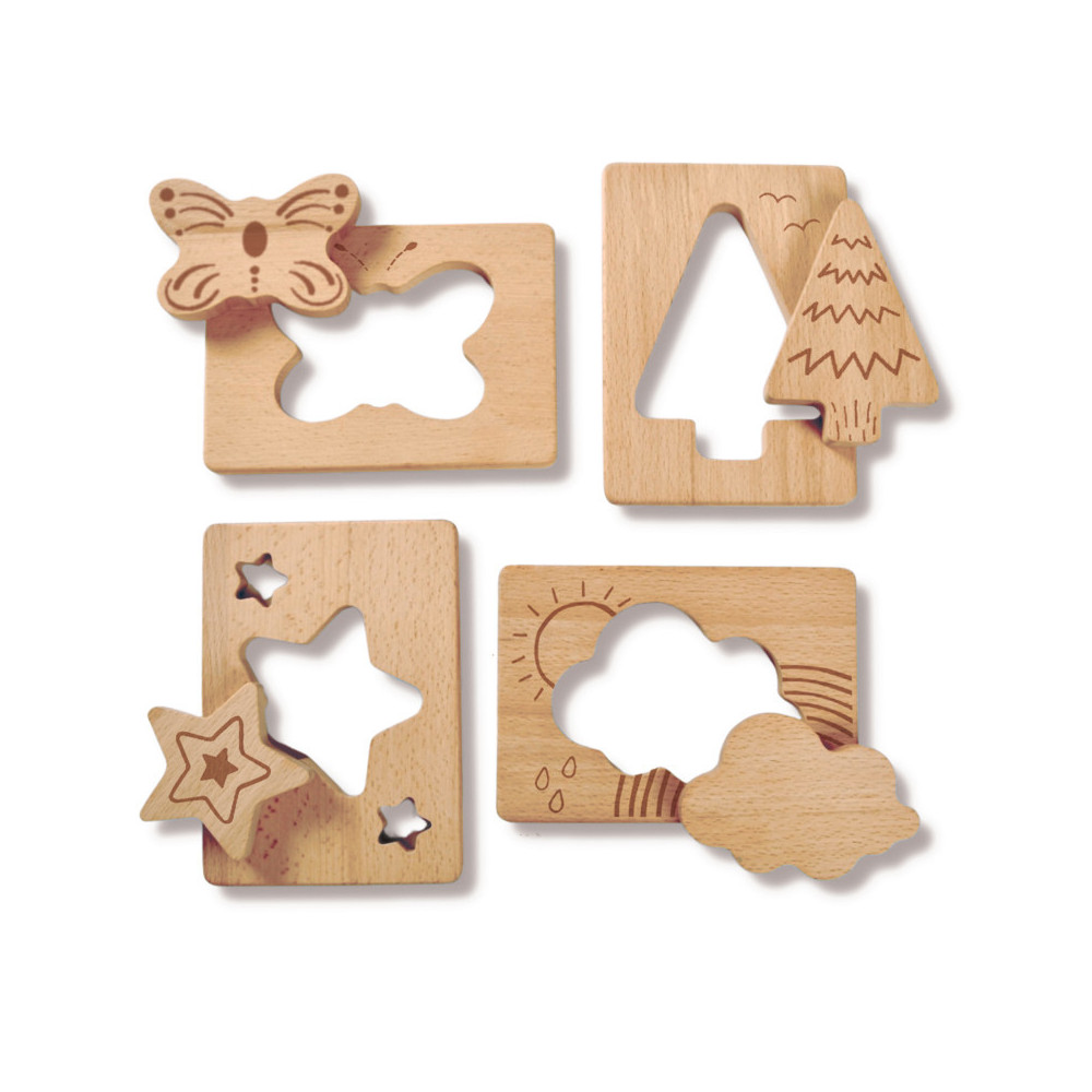 • Set of four shapes, 8 pieces: Tree, Star, Cloud and Butterfly
