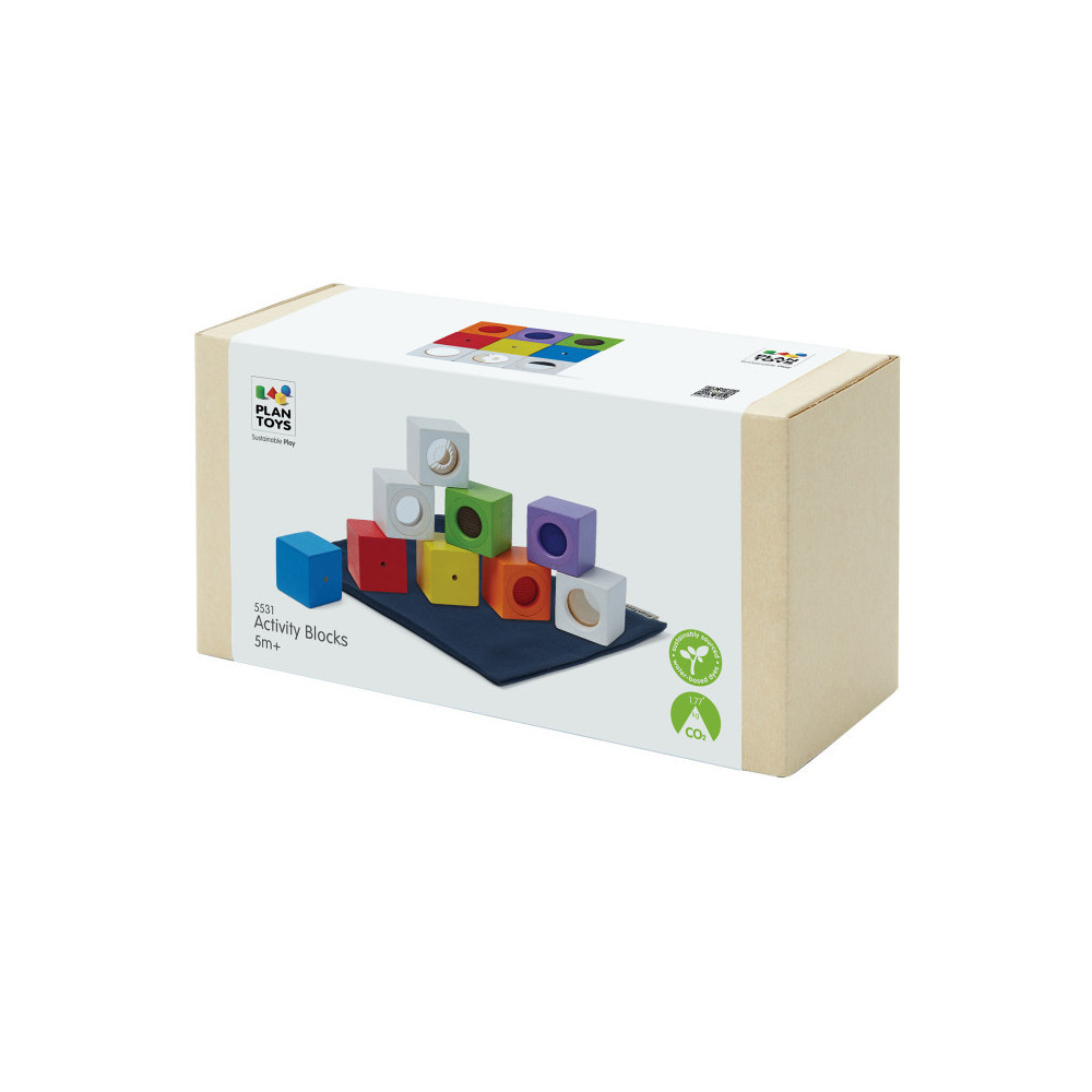 - MULTISENSORY EXPLORATION: The PlanToys Sensory Activity Blocks set features 9 unique blocks, divided into 3 categories: visual, auditory, and tactile. These blocks provide children with a rich sensory experience, engaging their sight, hearing, and touch. The combination of bright colors, soft textures, and interactive sounds helps foster sensory development while keeping kids entertained.
